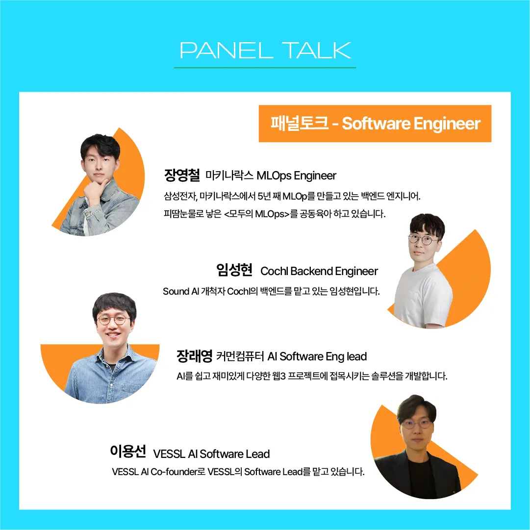 서로 다른 관점과 직무 속에서 하나의 프로덕트를 만들어 나가는 과정은 비단 저희뿐만 아니라 모든 프로덕트를 만들어 나가는 분들이 경험하고 있기에 공감대 형성이 가능한 영역입니다. 그렇기에 너무 기술적인, 소수의 개발자 혹은 연구자만 이해할 수 있는 세션을 만들기보다는 첫 이벤트에서는 누가 들어도 배워갈 수 있는 점이 있는 범용적인 내용을 다루는 것으로 정했습니다.