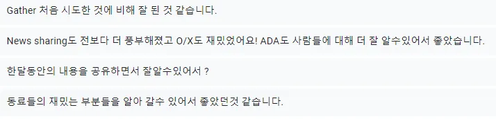 일할 때도 적극적으로 일하지만, 타운홀과 같이 팀원들과 함께 즐길 수 있을 때 최선을 다해 즐기는 Cochl의 분위기를 엿 볼 수 있는 한마디입니다!