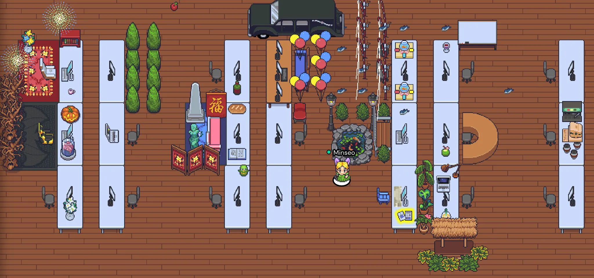 오피스 한가운데 오늘 타운홀의 특별 액티비티인 OX Game으로 넘어갈 수 있는 포털을 설치해뒀습니다. 약간 촌스럽긴 하지만 눈에 띄게 하기 위해 대문짝만하게 OX GAME ZONE을 표시해봤어요