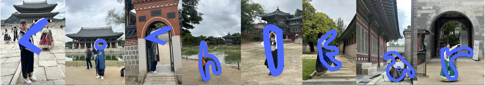 야유회를 재미있게 즐기라는 하늘의 뜻인지 다행히도 비가 오지 않아, 모든 팀원이 각자 매력 넘치는 한복으로 갈아 입고 경복궁으로 떠났습니다. 넓디 넓은 경복궁에서 같은 사진 장소를 찾는 건 쉽지 않은 일이었지만, 다들 두 눈 크게 뜨고 돌아다닌 결과 시간 내에 모든 사진을 찍을 수 있었습니다