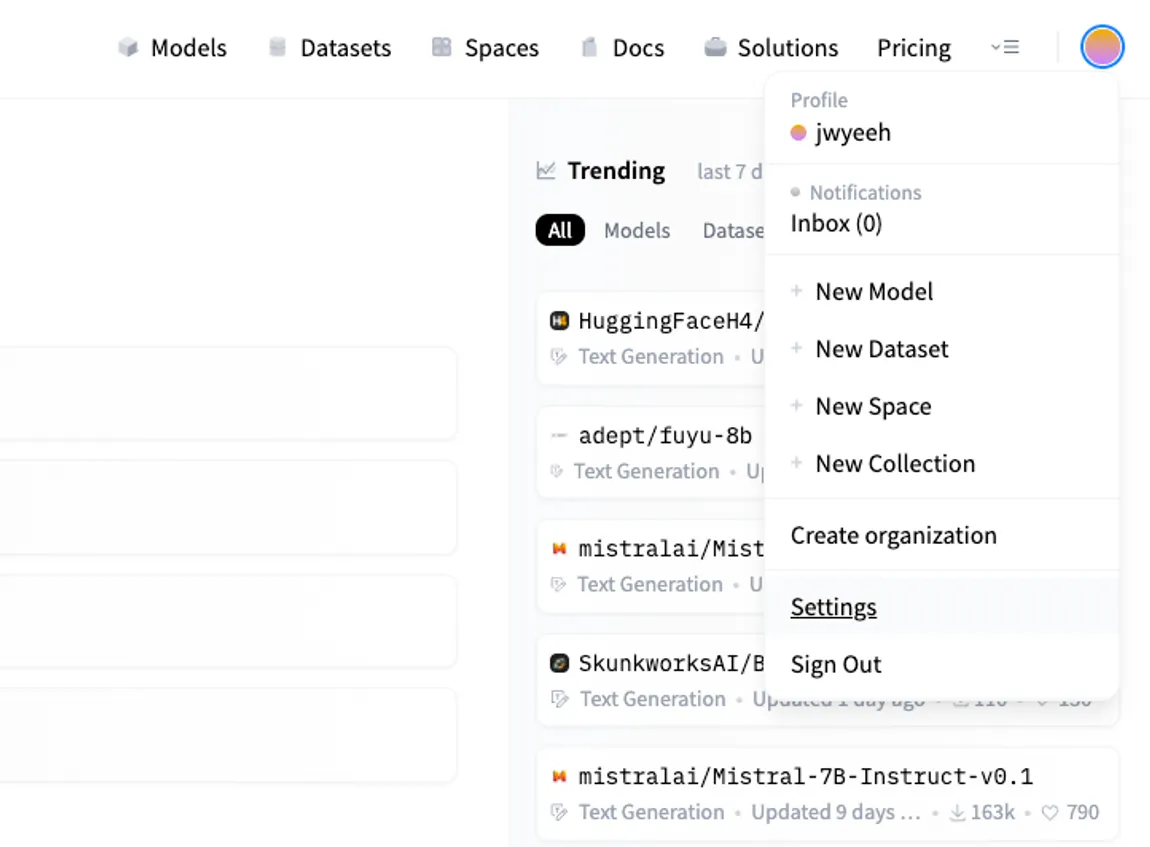 2. 회원가입 후 우측 상단 프로필을 클릭해 Settings로 들어갑니다.